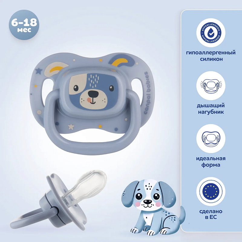 Пустышка силиконовая Canpol babies Cute Animals симметричная 6-18 мес 34/925 голубая собачка