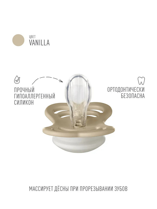 Пустышка силиконовая ночная Bibs Supreme Glow, 0+ 410257 Vanilla