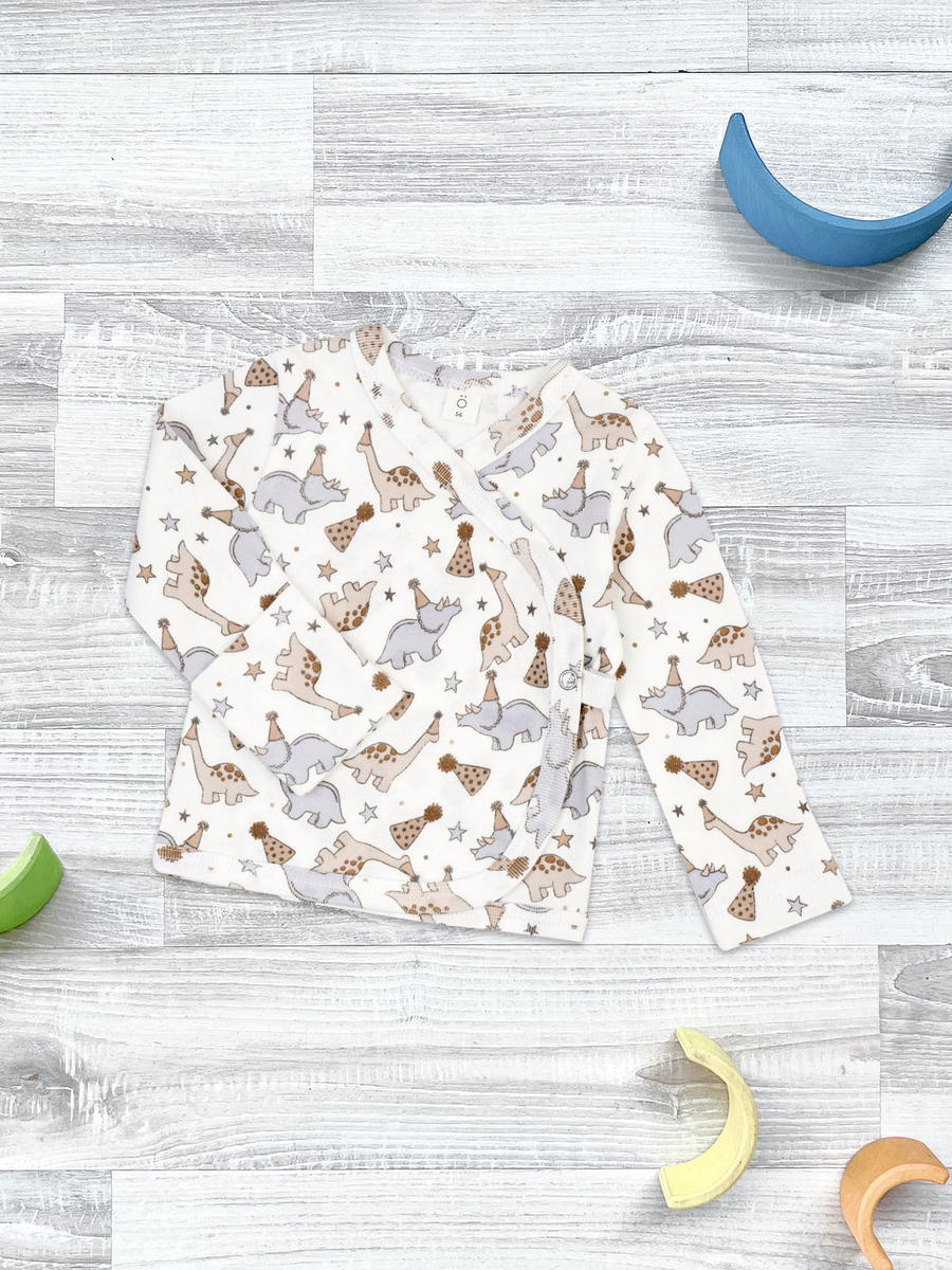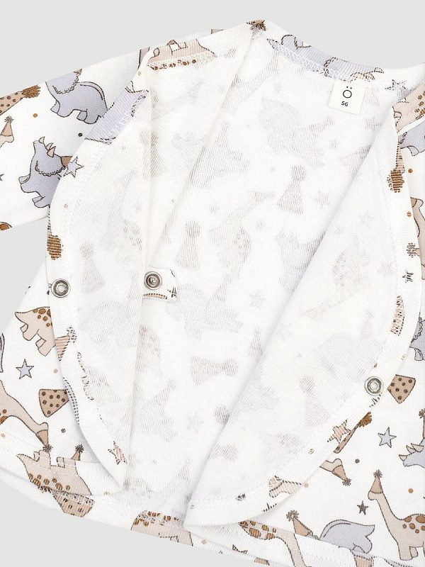Распашонка Mjölk [мьёльк] отлично садится по фигуре благодаря застежке на запах и двум кнопкам, ребёнку в ней не жарко, он не потеет. Материал приятный на ощупь, эластичный, лёгкий, гигроскопичный, "дышит" и не вызывает аллергии. Кнопки удобно расположены сбоку, что облегчает застёгивание изделия на малыше. Распашонка в 56-м размере оснащена антицарапками.