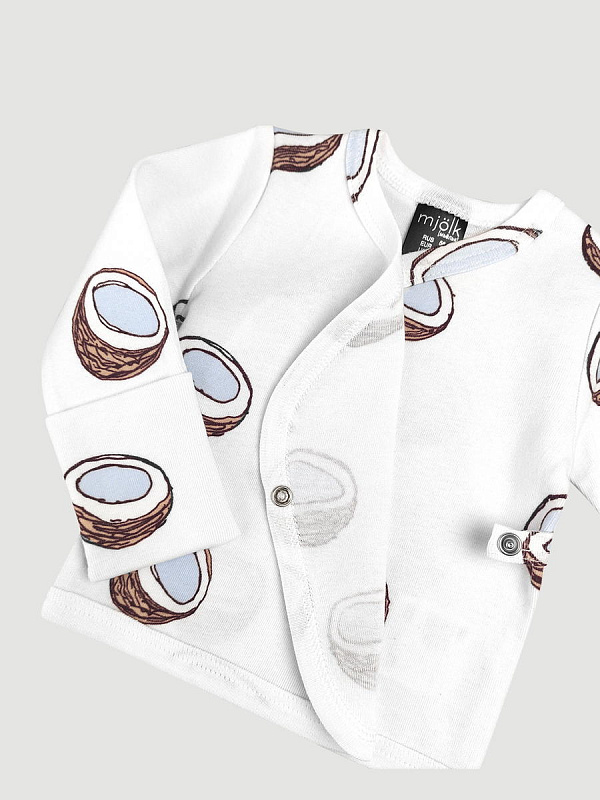 Распашонка Mjölk [мьёльк] с длинным рукавом выполнена из тонкого 100% трикотажного хлопка. Плетение нитей в этой ткани позволяет сделать материал эластичным и лёгким, что позволяет комфортно использовать распашонки в качестве первого слоя.