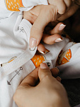 Распашонка Mjölk [мьёльк] отлично садится по фигуре благодаря застежке на запах и двум кнопкам, ребёнку в ней не жарко, он не потеет. Материал приятный на ощупь, эластичный, лёгкий, гигроскопичный, "дышит" и не вызывает аллергии. Кнопки удобно расположены сбоку, что облегчает застёгивание изделия на малыше. Распашонка в 56-м размере оснащена антицарапками.