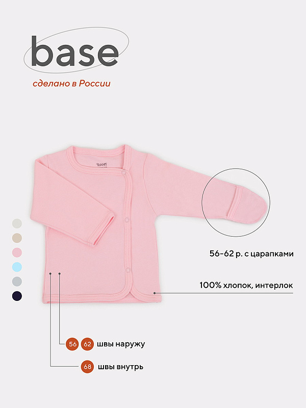 Распашонка Rant Base на кнопках с запахом 5369/5469 блед-розовый 68