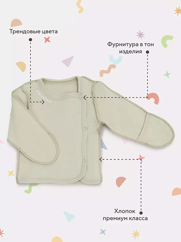 Распашонки из этой коллекции дополнены кнопочками, чтобы полочки не “разлетались” и малышу было комфортно.