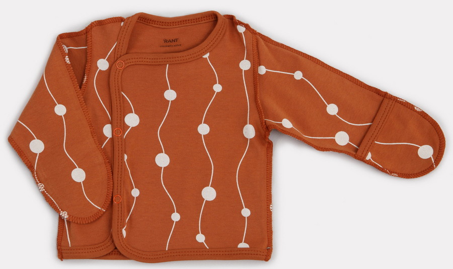 Распашонка из этой коллекции дополнена кнопочками, чтобы полочки не “разлетались” и малышу было комфортно.