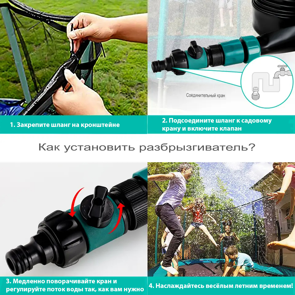 Распылитель воды для батута - это инновационный аксессуар, который позволяет превратить ваш батут в оазис свежести и веселья. Этот компактный и легкий распылитель обеспечивает равномерное распределение воды по всей поверхности батута, создавая приятное ощущение охлаждения в жаркие летние дни. Данный распылитель легко устанавливается на любой тип батута и не требует сложной установки. Просто подключите его к стандартному шлангу с водой и наслаждайтесь увлажняющим эффектом во время прыжков и игр на батуте. Распылитель обладает регулируемым потоком воды, что позволяет настроить интенсивность охлаждения в соответствии с вашими предпочтениями. Вы сами контролируете количество воды, которое будет распыляться, и можете легко изменять это настройки в зависимости от погодных условий и настроения. Не только дети, но и взрослые будут в восторге от освежающего эффекта, который создает распылитель воды для батута. Больше не нужно беспокоиться о жаре и потере энергии, ведь этот аксессуар позволяет оставаться прохладным и комфортным даже в самые жаркие дни. Добавьте в свой батут новую размеренность и приятные ощущения с помощью распылителя воды для батута. Позвольте себе наслаждаться прыжками и играми на батуте, не беспокоясь о жаре и дискомфорте. Порадуйте себя и своих близких с помощью этого удивительного аксессуара.