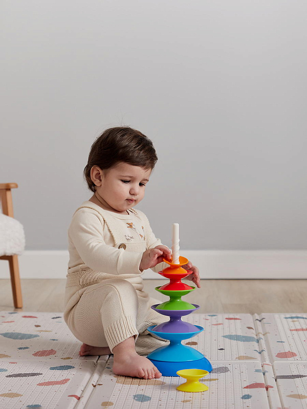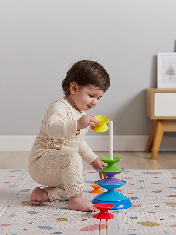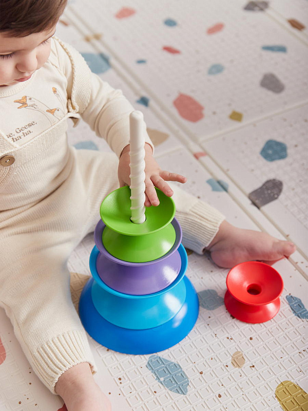 Игрушка-пирамидка GIZA NEW – настоящий тренажёр креативности. Собирать игрушку можно самыми разными способами. В процессе малыш будет проявлять изобретательность, поймёт понятие баланса, будет учиться усидчивости и аккуратности. Детали можно катать, вертеть, составлять во всевозможные конструкции. Игрушка помогает выучить цвета и счёт, развивает мелкую моторику, учить сравнивать размеры, делать выводы, решать сложные задачи.