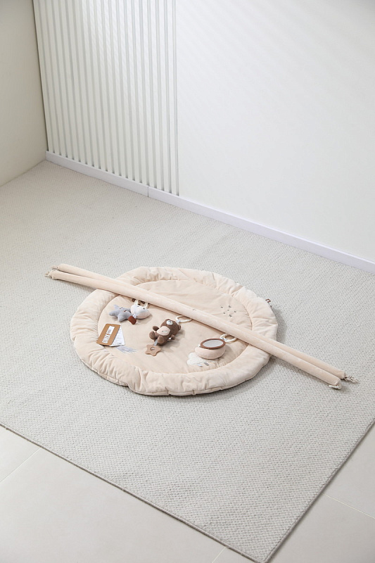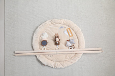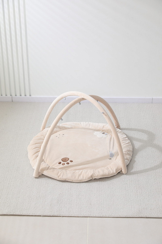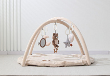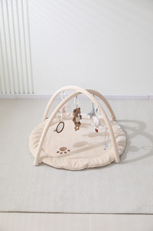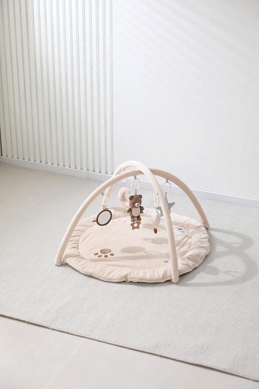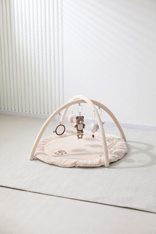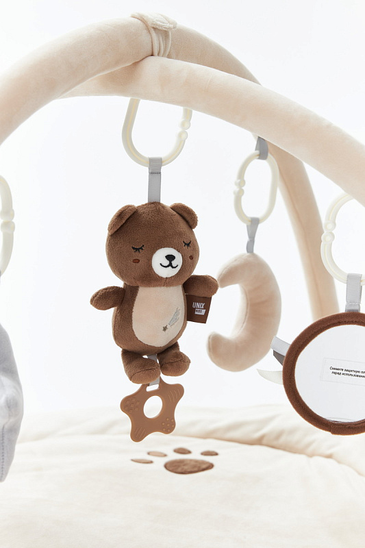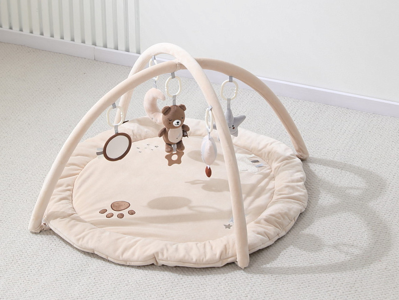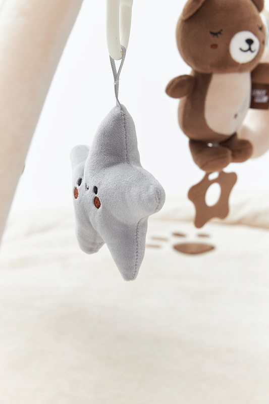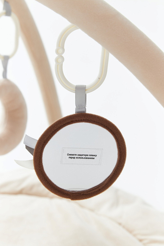 Главной особенностью является наличие игровых элементов, расположенных на двух дугах, включающих пять разных видов подвесных развивающих игрушек 0+: зеркало, погремушку – прорезыватель в виде медвежонка, звезду - пищалку, погремушку в виде воздушного шара и луну - пищалку. Эти подвесные игрушки стимулируют развитие органов чувств и способствуют формированию начальных представлений о форме, цвете и звуке. Все изделия выполнены из высококачественного гипоаллергенного материала, что гарантирует абсолютную безопасность здоровья вашего крохи.