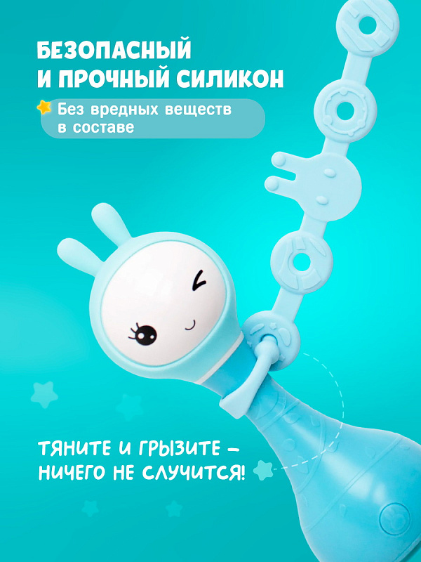 – Прочный и безопасный для детей силикон без вредных веществ в составе. Тяните, грызите, таскайте – ничего не случится!