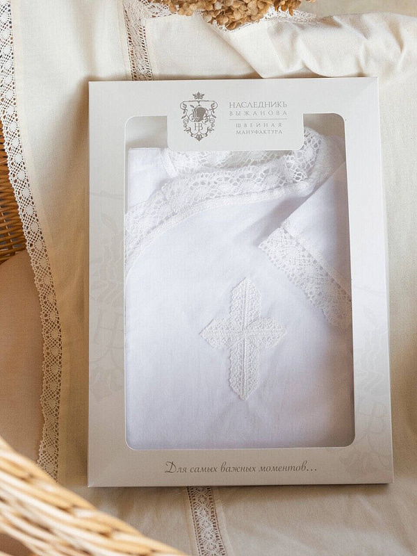 Рубашка крестильная НаследникЪ Выжанова запах/спереди 402-1 ЧЗ белый 62Нет оценокХарактеристики