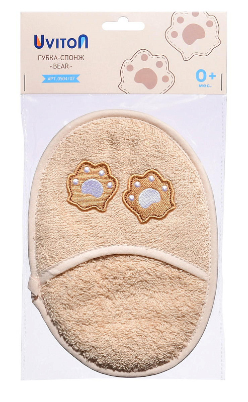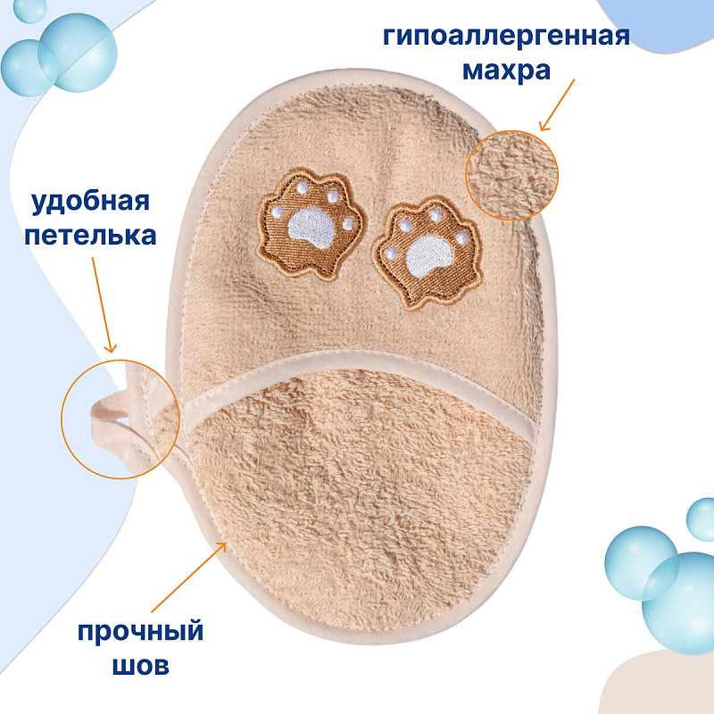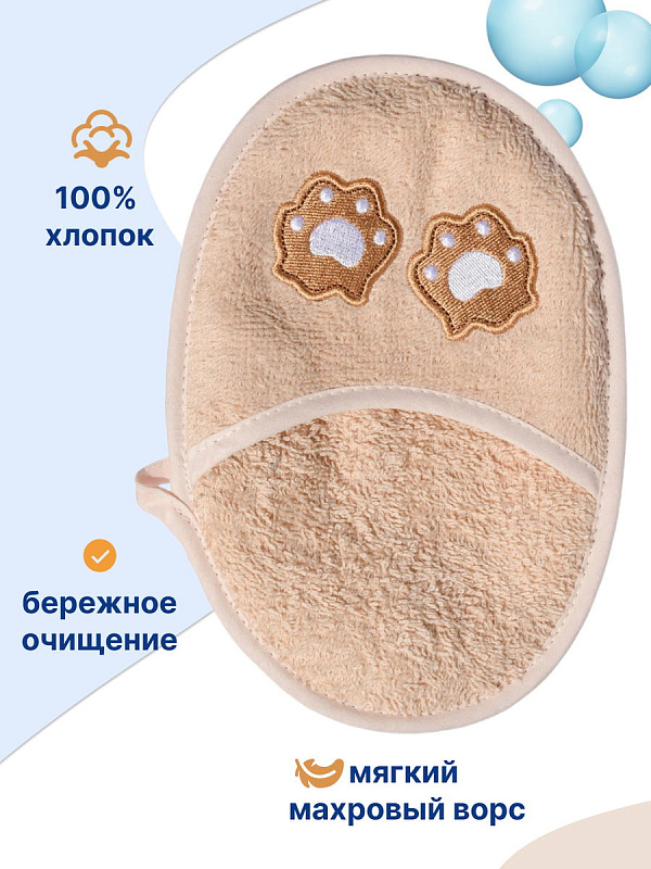 Рукавичка-спонж для купания Uviton Bear хлопковая бежевая 0504/07