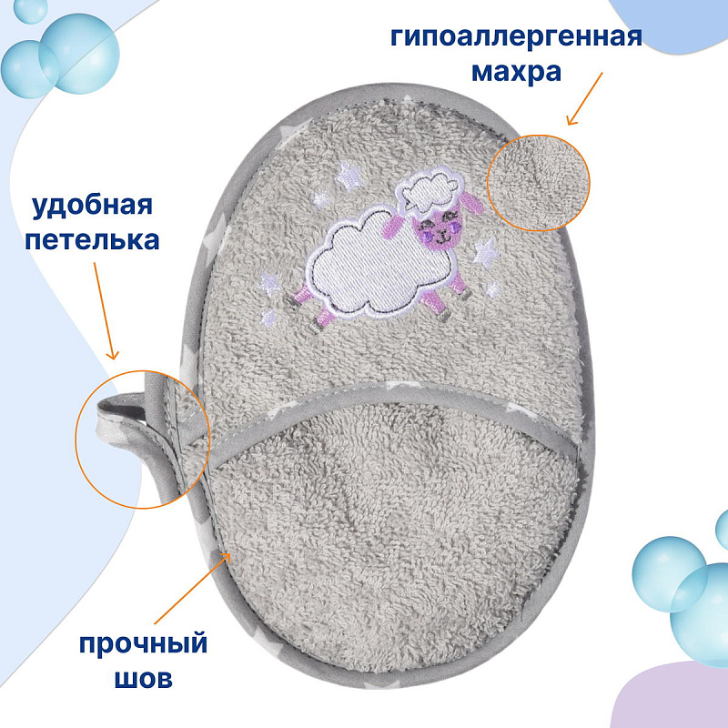 Рукавичка-спонж для купания Uviton Сlouds хлопковая серая 0504/06