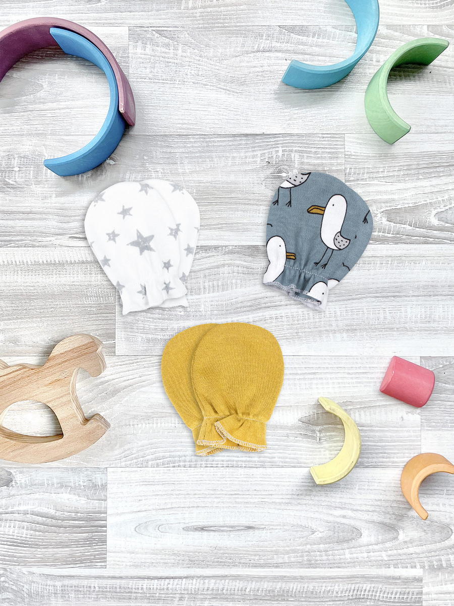 Три пары стильных рукавичек на резиночке – необходимая вещь при уходе за маленьким ребёнком. Антицарапки рассчитаны на детей с первых дней жизни и до 2-3х месяцев, пока младенец ещё не контролирует движения и может себя поцарапать. Для защиты нежной кожи от крошечных, но острых ноготков, рекомендуем надевать царапки малышу во время бодрствования и сна, а также под пеленальный кокон.