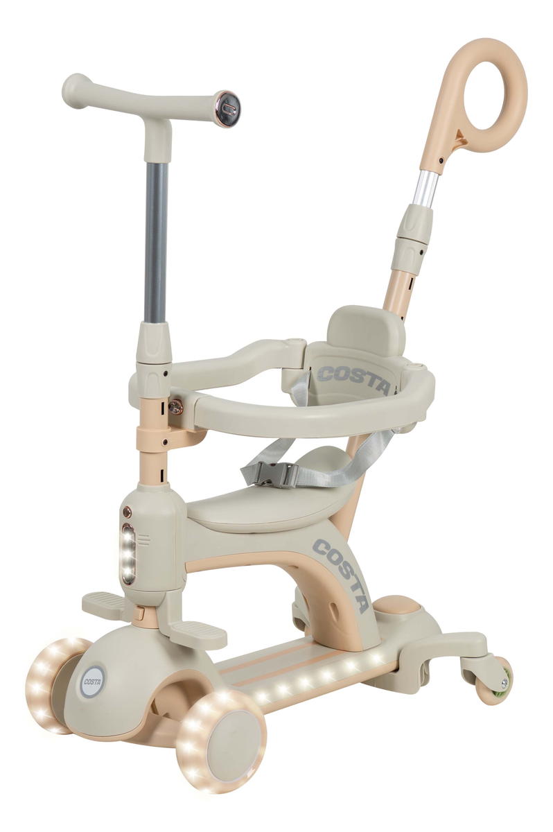 Самокат трансформер 5 в 1 многофункциональный: можно использовать как с сиденьем и родительской ручкой, так и без них.