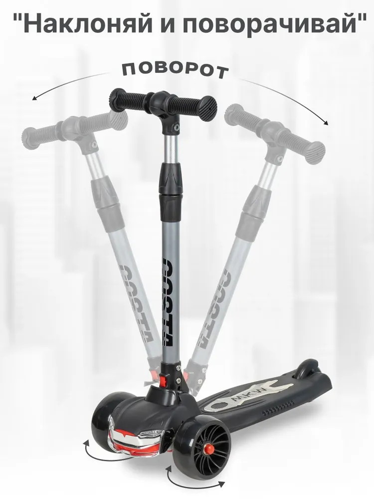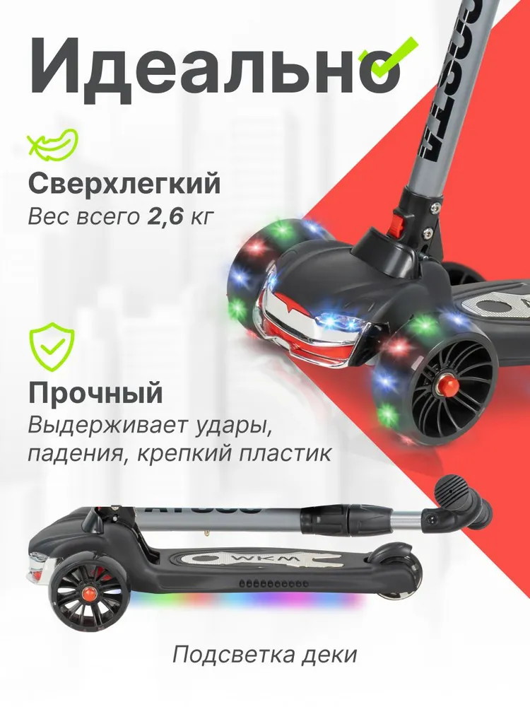 - Стильный дизайн: Имитация машинки в передней части самоката привлечет внимание вашего ребенка и сделает прогулки еще более увлекательными
