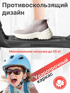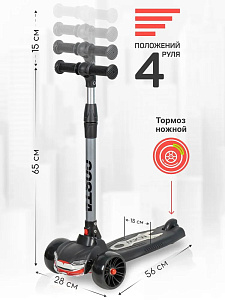 - Удобство и безопасность: Противоскользящее покрытие платформы обеспечивает устойчивость, а ножной тормоз гарантирует безопасность во время катания.