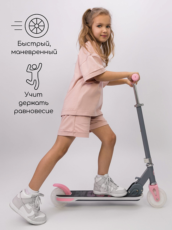 Самокат двухколёсный Amarobaby Bloom серый/розовый