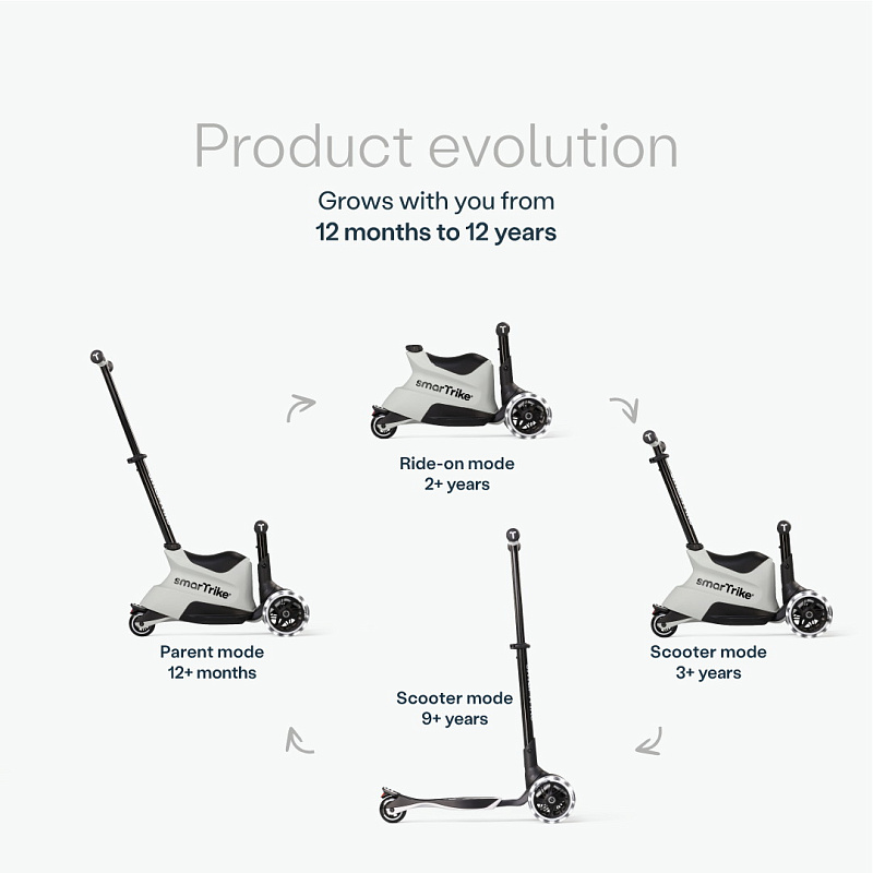 Самокат трансформер 3 в 1 SmarTrike Xtend Scooter ride-on с ручкой Cool GreyНет оценокХарактеристики