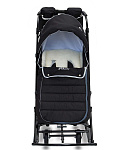 Санки "ONYX" также оснащены выдвижной подножкой и складным каркасом, что делает их удобными для хранения и перевозки. Прорезиненные колесики на полозьях обеспечивают хорошее сцепление с поверхностью и плавное движение. Ручка может быть перекинута с одной стороны на другую в зависимости от предпочтений родителя. Кроме того, санки оснащены выдвижной колесной базой, что облегчает передвижение по неровной местности.