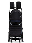 Новая модель сопровождается также новым рюкзаком с широкой молнией, который легко крепится к ручке санок с помощью карабинов. Внутри рюкзака есть съемный увеличенный матрасик, который состоит из овечьего чеса и синтепона, обеспечивая мягкость и комфорт для малыша.