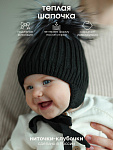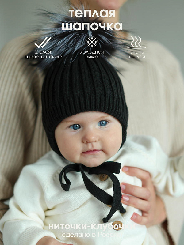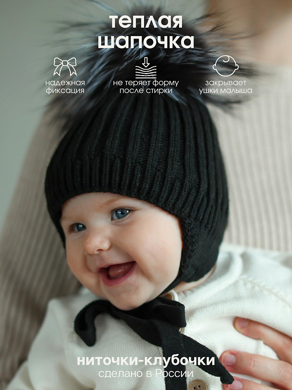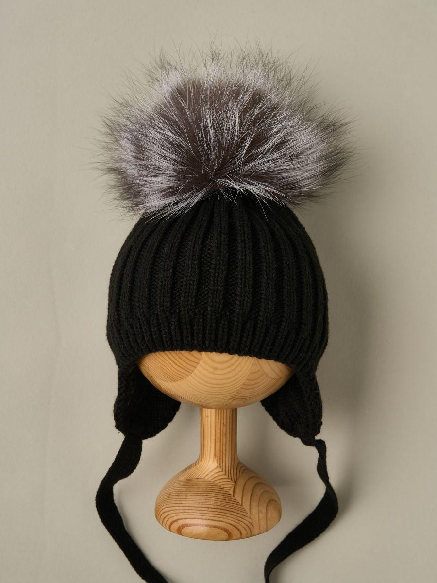 Шапка Little Star Лапша подклад флис, помпон енот 5601 (ЧЗ-нк) черный 38