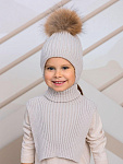 Шапка Little Star Лапша подклад флис, помпон енот 5601 (ЧЗ-нк) жемчужный 38