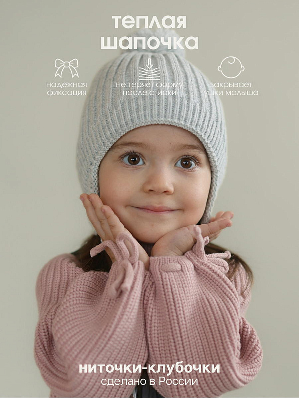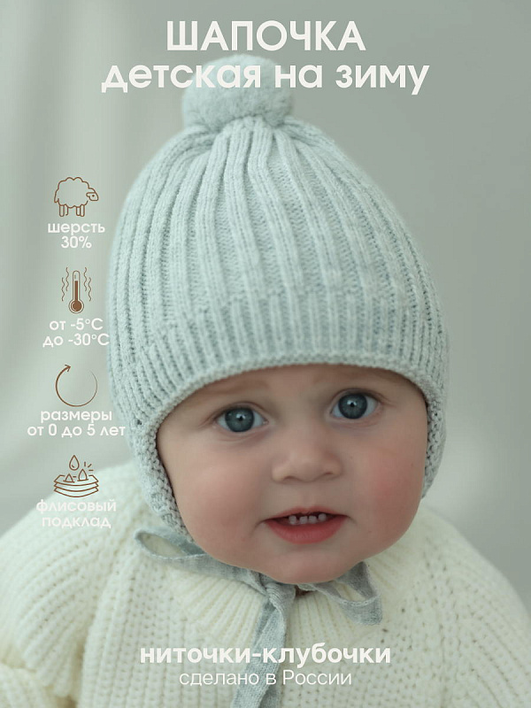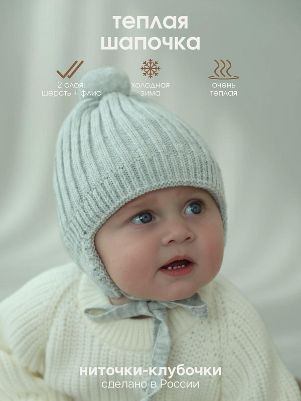 Теплая шапка для малышей на завязках бренда "Ниточки- Клубочки" незаменимый аксессуар для детской одежды в зимний и демисезонный периоды. Шапочка для новорожденных с флисовым подкладом и вязаным помпоном на позднюю осень, зиму, весну отлично прилегает по головке малыша, закрывает ушки, лобик и прекрасно защищает от холода. Детские шапки выполнены из высококачественной смесовой пряжи с хлопком 20%, шерстью 30% и ПАН 50%. Хлопок придает изделию нежность, шерсть делает его мягкими и теплыми, а ПАН - неприхотливыми в уходе. Наши шапочки мягкие, нежные не колются, идеально подходят для повседневной носки, для длительных прогулок на свежем воздухе. Рекомендации по уходу вязаных изделий: - Вязаные вещи не любят выкручиваний и трений! - Только деликатная стирка в режимах «шерсть», «деликатный» или «ручной» (20-30*, отжим не более 800 оборотов). - Используйте мягкие средства для шерстяных изделий в жидкой форме. - Не застирывайте пятна. Чтобы удалить их, положите испачканную вещь на полотенце. Нанесите на пятно выбранный вами пятновыводитель (без отбеливателя), а затем начните промачивать его чистым полотенцем; - Сушите вещи в горизонтальном положении избегая образования заломов. Сушка в сушильной машине разрешена и приветствуется на самой минимальной температуре; - При трении все же возможно образование катышек, избавиться от них очень легко липкой лентой, бритвой или машинкой для удаления катышек. Не забывайте, что правильный уход поможет надолго сохранить первоначальный вид! Переходите в наши бренд Little Star, чтобы ознакомиться с нашим ассортиментом. С наилучшими пожеланиями Вам и Вашему маленькому Чуду!