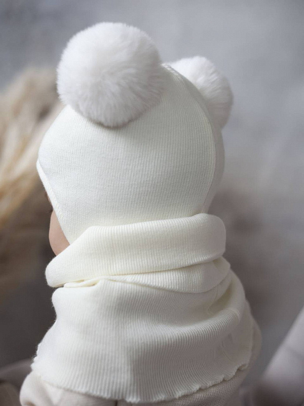 Шапка с помпонами со снудом НаследникЪ Выжанова НВ-МТ-058 ЧЗ молочный 38