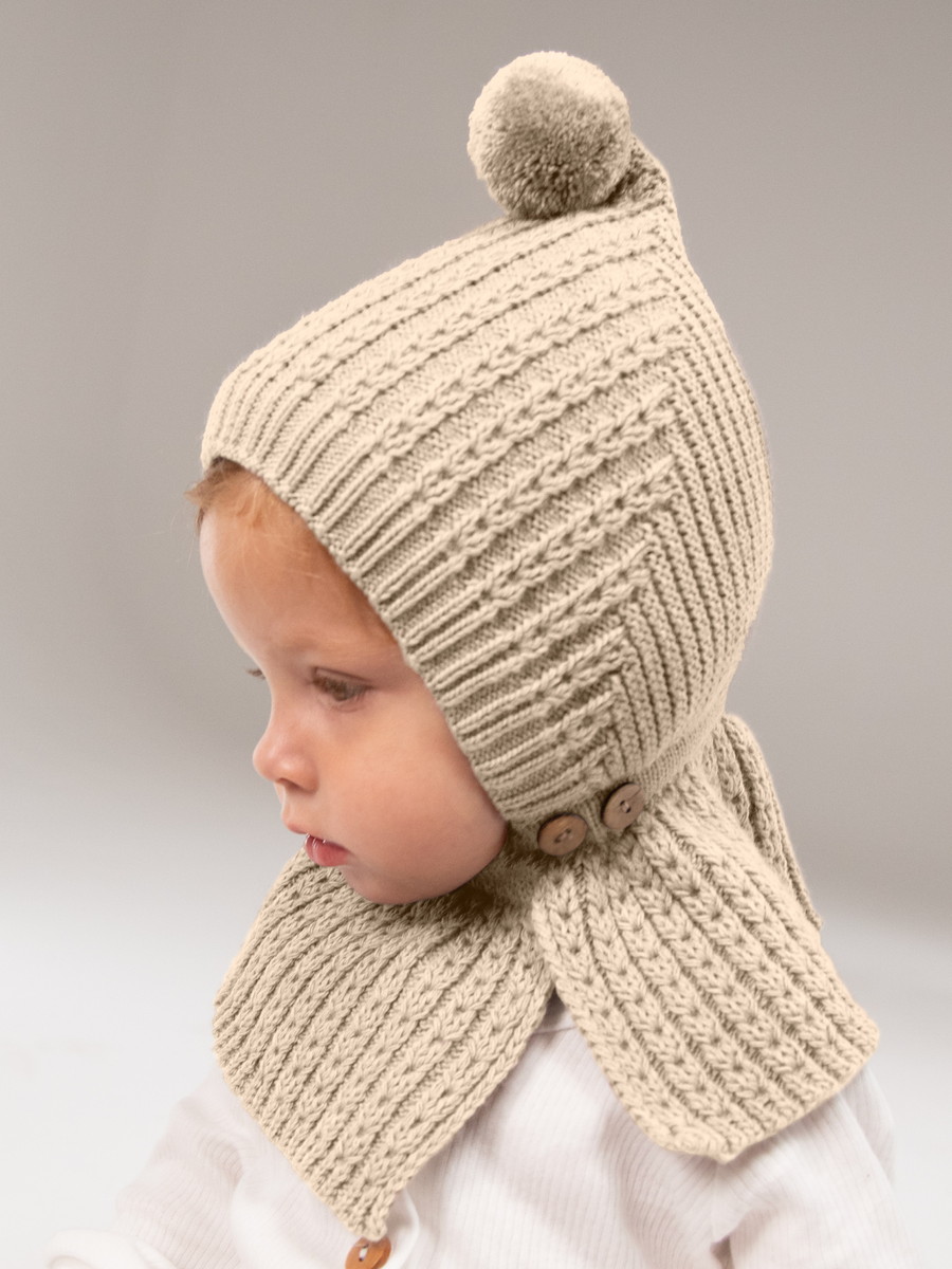 Верхний слой выполнен из качественной пряжи в универсальных оттенках, которые легко сочетаются с любой верхней одеждой. Внутренняя подкладка зимней шапочки изготовлена из 100% хлопка, обеспечивая отличную терморегуляцию и комфорт в различных погодных условиях.