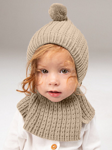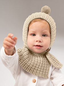 Шапка-шлем вязаная AmaroBaby Bonny зимняя с утеплителем ЧЗ бежевый 40