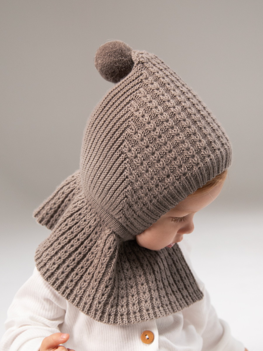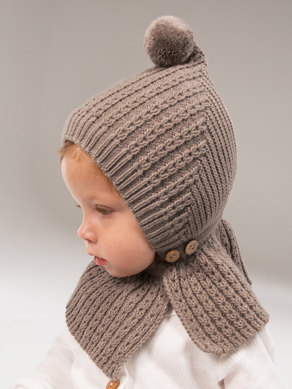 Шапка-шлем вязаная AmaroBaby Bonny зимняя с утеплителем ЧЗ коричневый 40