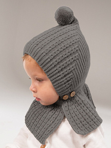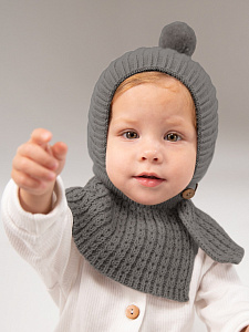 Шапка-шлем вязаная AmaroBaby Bonny зимняя с утеплителем ЧЗ серый 44