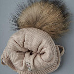 Зимняя шапочка с натупальным бумбоном из меха енота