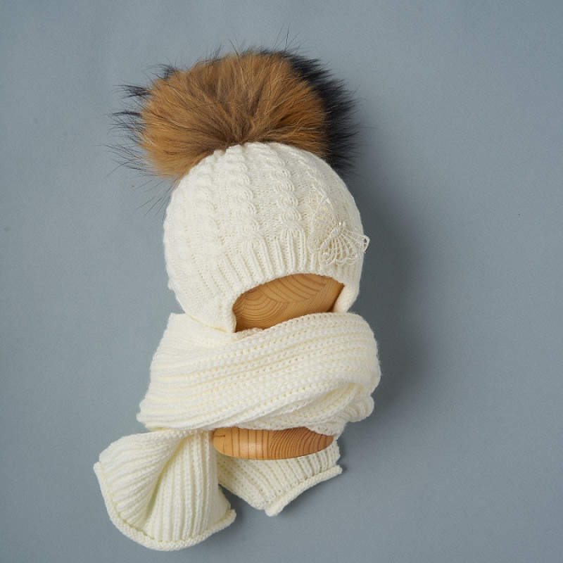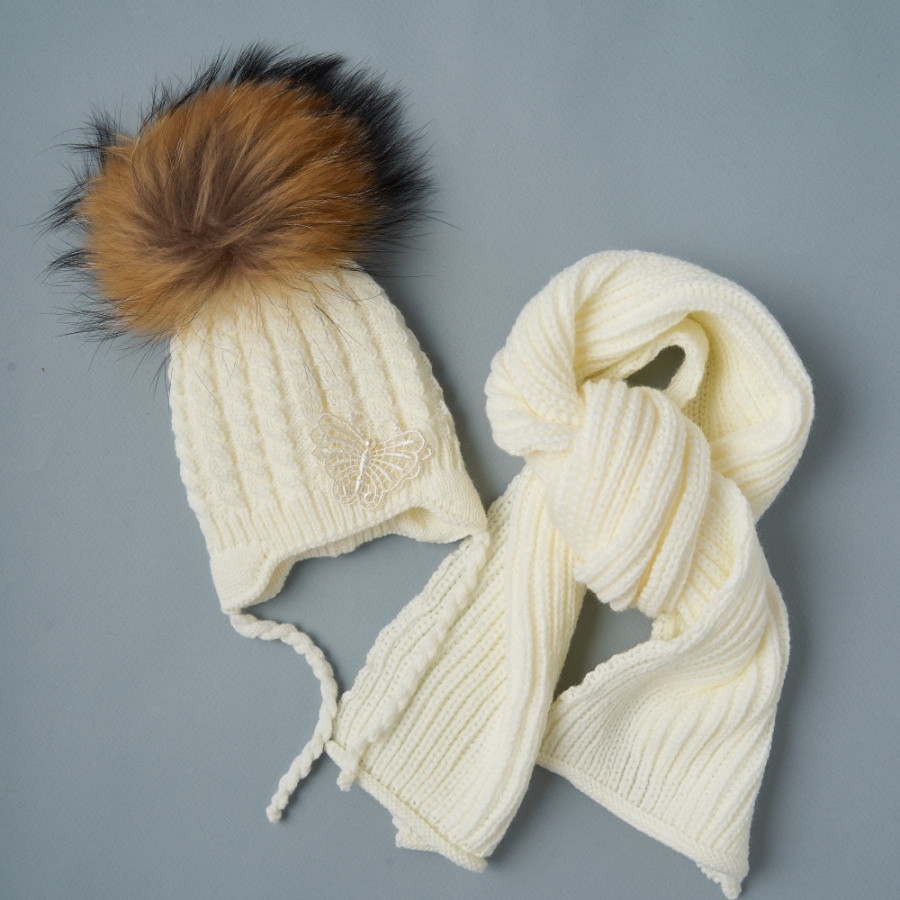 Шапочка Little Star с натур. бумбоном и шарфик Батерфляй крем 38