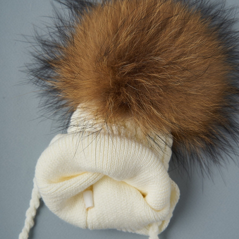 Зимняя шапочка с натуральным бубоном из меха енота и шарфик, для прогулок в погоду до -30˚С. Шапочка выполнена из двухслойной вязки, отлично прилегает по головке малыша, закрывает ушки, лобик и прекрасно защищает от холода.