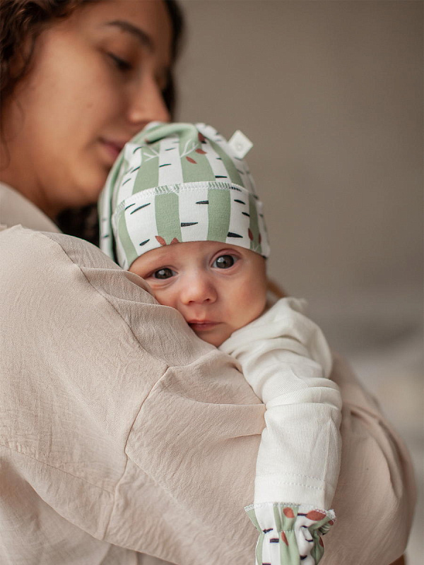 Шапочка с узелком mjölk [мьёльк] выполнена их трикотажного хлопка, который подходит нежной коже новорожденного, не вызывает аллергии и дарит малышу комфорт.