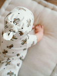 Произведено вручную в Санкт-Петербурге, с авторскими принтами и сертификатами на всю продукцию. Бережно упаковано в фатиновый мешочек и послужит хорошим подарком родным и близким к появлению на свет крошки.