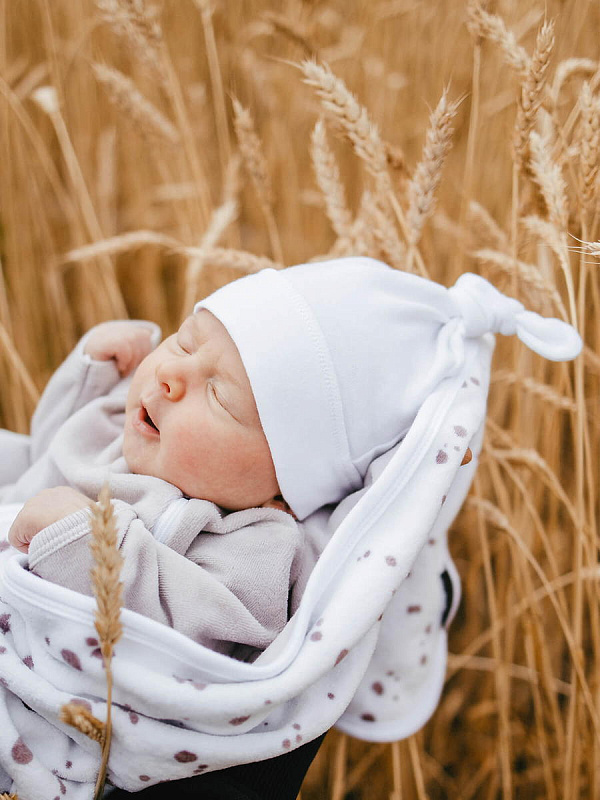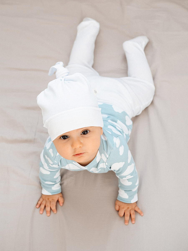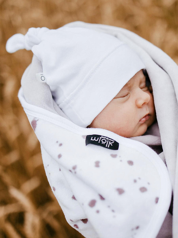 Шапочка с узелком mjölk [мьёльк] выполнена их трикотажного хлопка, который подходит нежной коже новорожденного, не вызывает аллергии и дарит малышу комфорт.