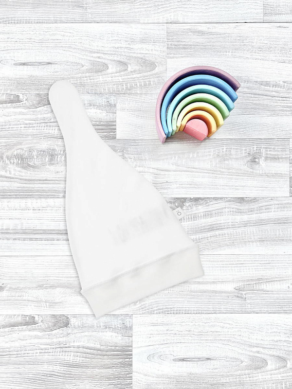 Вы можете самостоятельно регулировать глубину шапочки. Подросшему малышу можно носить её без отворота, а также перевязывать узелок. Выбрать правильный размер поможет обхват головы ребёнка.