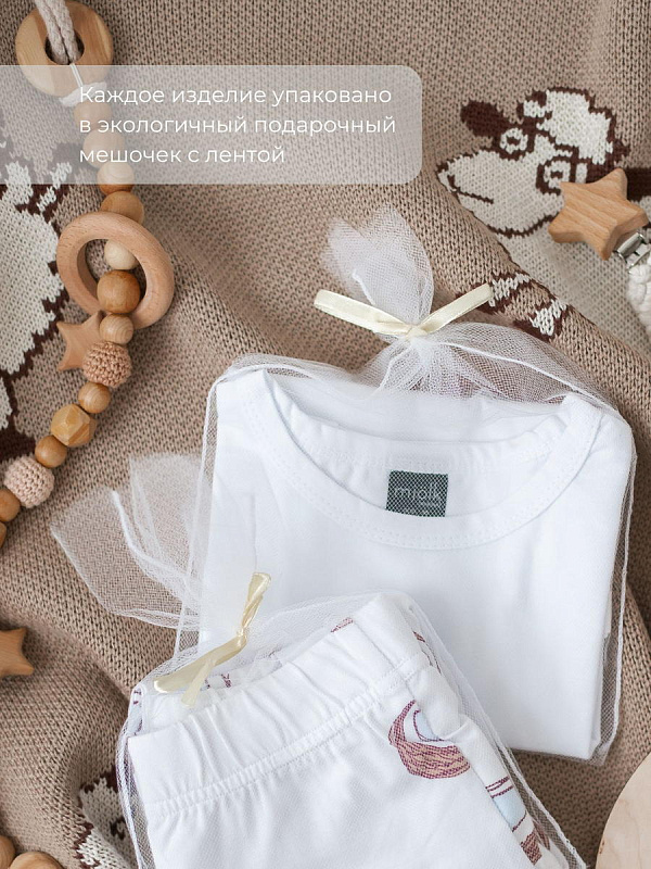 Произведено вручную в Санкт-Петербурге, с авторскими принтами и сертификатами на всю продукцию. Бережно упаковано в фатиновый мешочек и послужит хорошим подарком родным и близким к появлению на свет крошки.