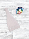 Вы можете самостоятельно регулировать глубину шапочки. Подросшему малышу можно носить её без отворота, а также перевязывать узелок. Выбрать правильный размер поможет обхват головы ребёнка.