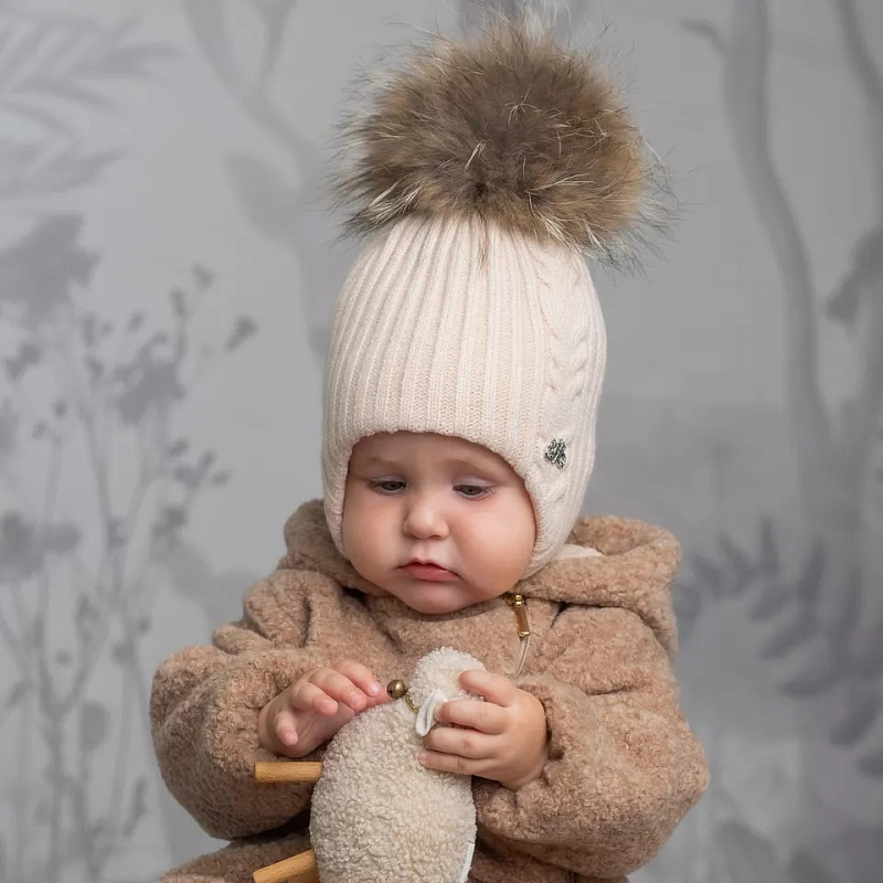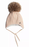 Шапочка НаследникЪ Выжанова с мех. помпоном на завязках НВ1023 пудра 38