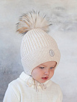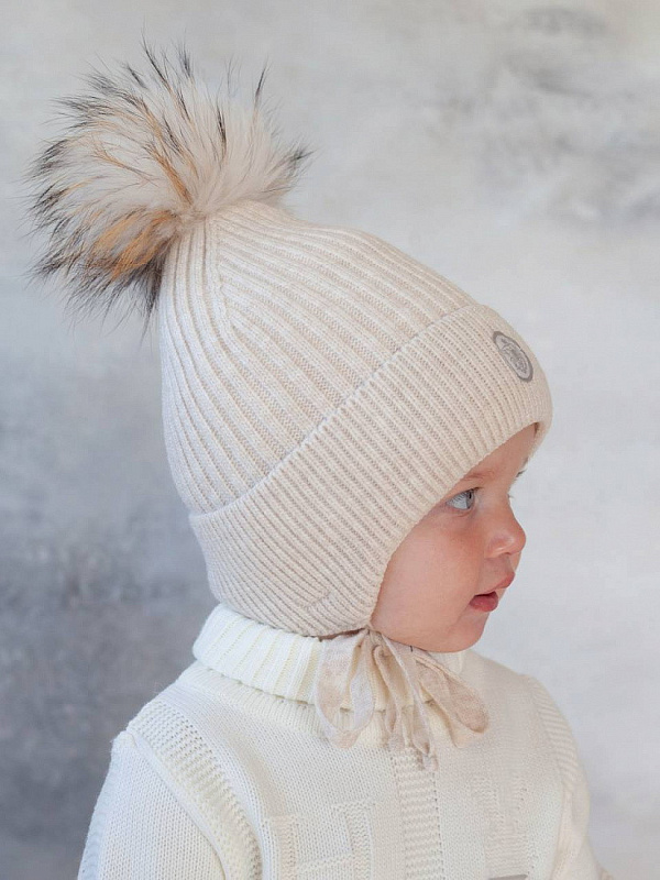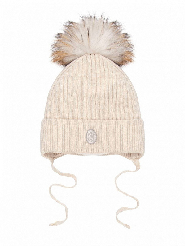 Шапочка НаследникЪ Выжанова с мех. помпоном на завязках НВ1031 ЧЗ бежевый 38