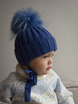 Шапочка НаследникЪ Выжанова с цвет. помпоном на завязках НВ5007 ЧЗ джинс 38