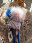 Шапочка НаследникЪ Выжанова с цвет. помпоном на завязках НВ5007 джинс 38