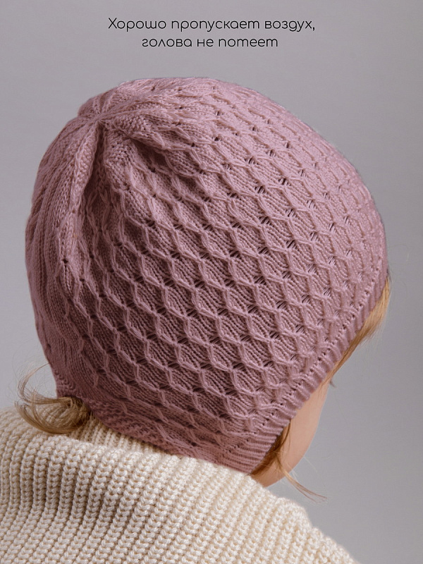 Шапочка вязаная AmaroBaby Berry демисезонная ЧЗ пудровый 46