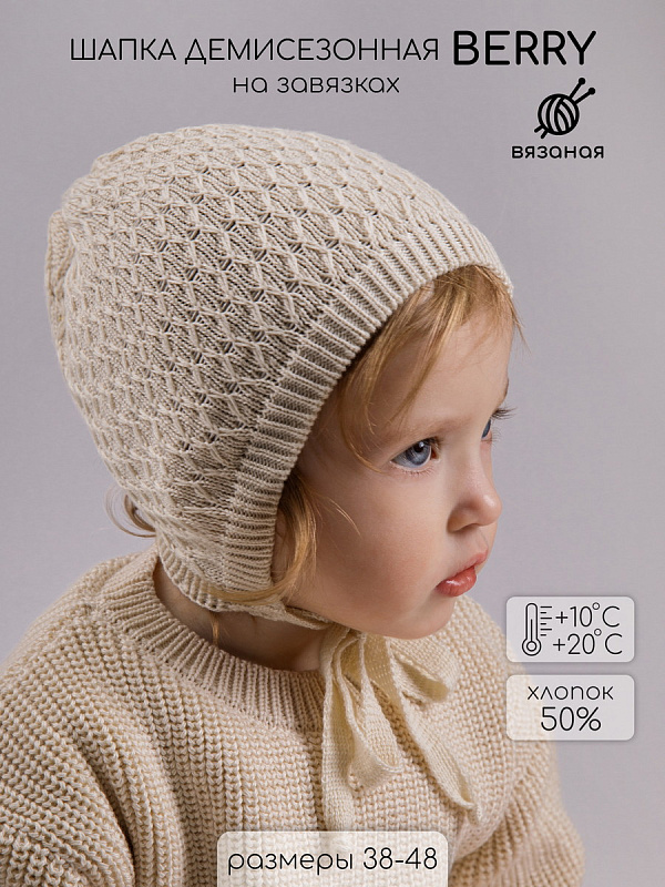 Шапочка вязаная AmaroBaby Berry демисезонная ЧЗ светло-бежевый 40