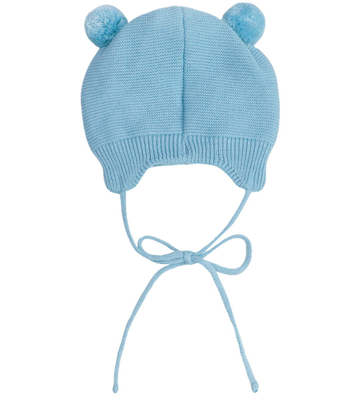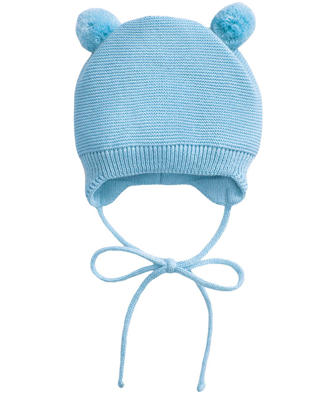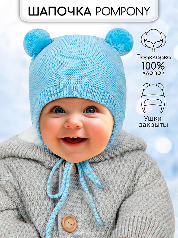 Шапочка вязаная AmaroBaby Pure Love Pompony с подкладом ЧЗ голубой 38