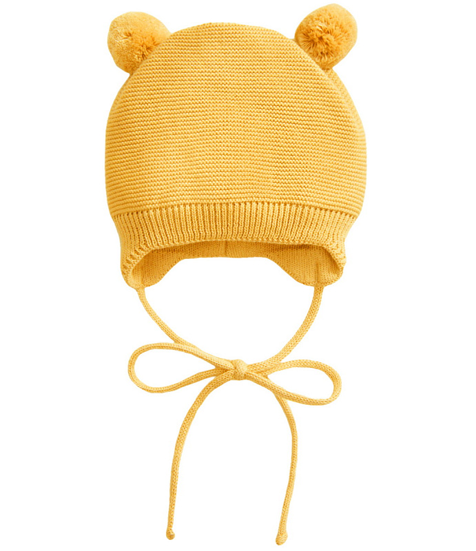 Шапочка вязаная AmaroBaby Pure Love Pompony с подкладом ЧЗ желтый 38