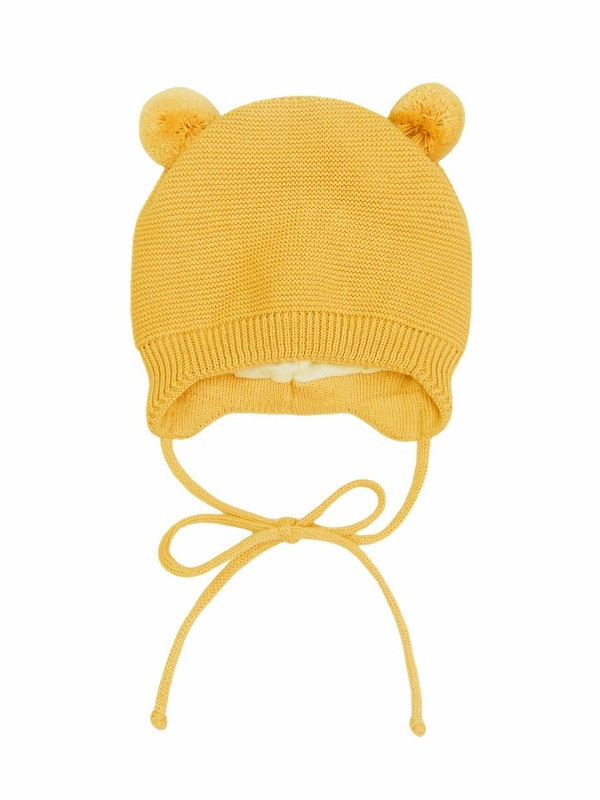 Шапочка вязаная AmaroBaby Pure Love Pompony с подкладом желтый 40