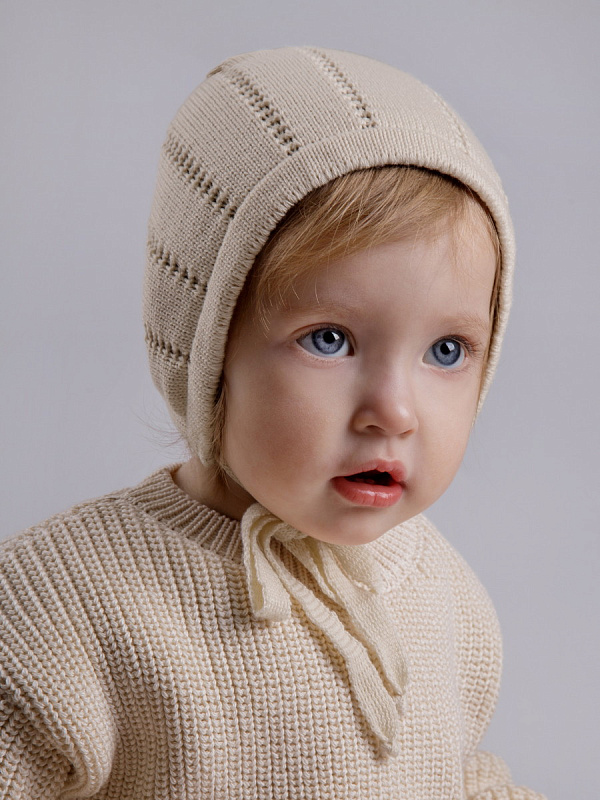 Шапочка вязаная AmaroBaby Tiny демисезонная ЧЗ светло-бежевый 42
